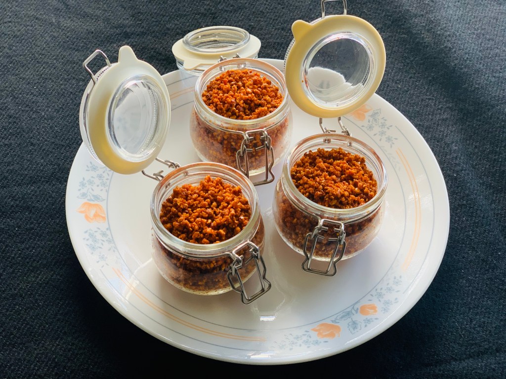 Kashmiri red chili powder gives nice red color and it’s not as hot as other red chili powders.
