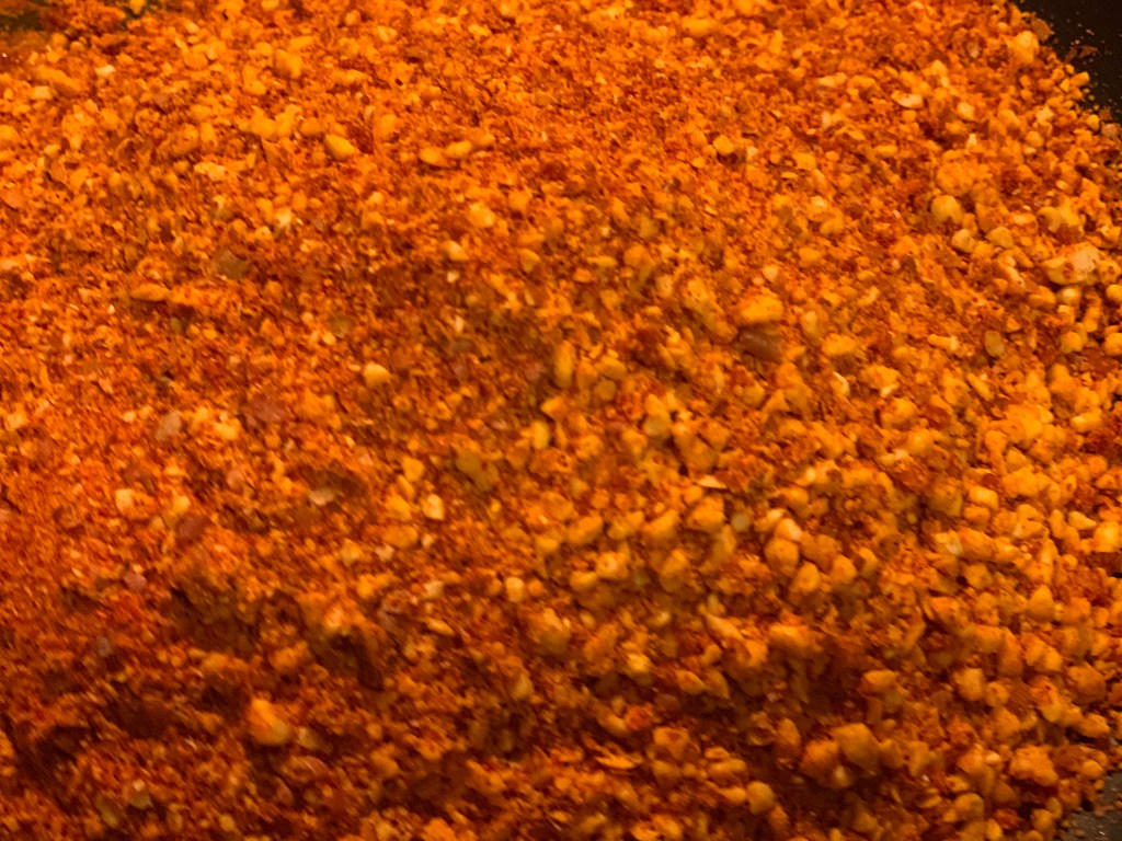 - Use a grinder to crush the peanuts so that they are coarse. ( I use Vitamix blender’s pulse feature, set the nob at 3 on the dial) .