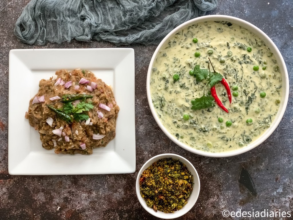 Fenugreek leaves means ‘Methi’ in Hindi and Marathi language. ‘Matar’ is nothing but green peas, and ‘Malai’ is a fresh cream. ‘Methi Matar Malai’ is a rich and creamy North Indian curry prepared in a white sauce. The curry offers complementing flavors ranging from sweet to salty and spicy to slightly bitter (comes from fenugreek leaves). The bitterness is perfectly balanced with cashews, sugar, and fresh cream. I enjoy the curry’s smooth and creamy texture and prefer to pair it with whole wheat roti or paratha.
