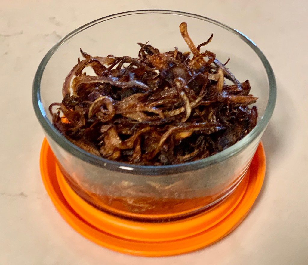 - Next, add fried onions, caramelized onions, and other masala base ingredients in a blender.