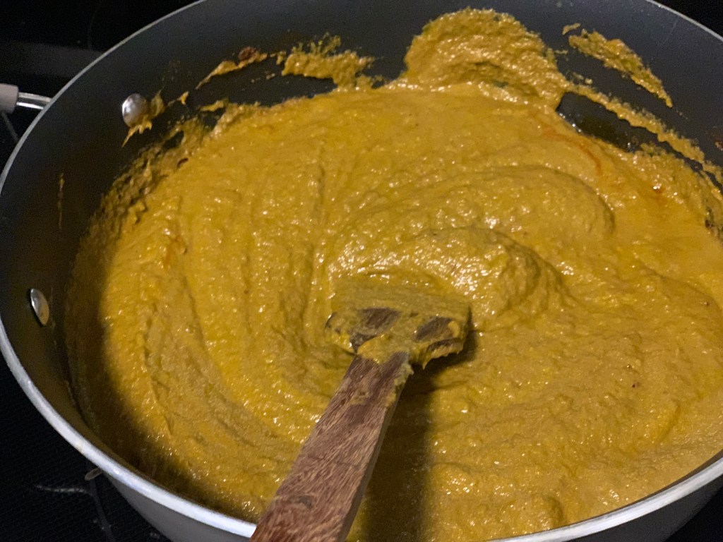 - Heat 3 tbsp oil in a pan and transfer the masala paste in it, as shown in picture # 5.