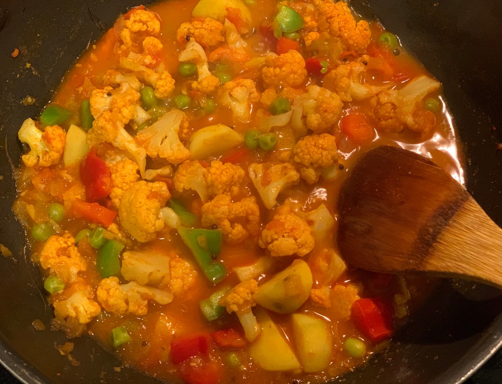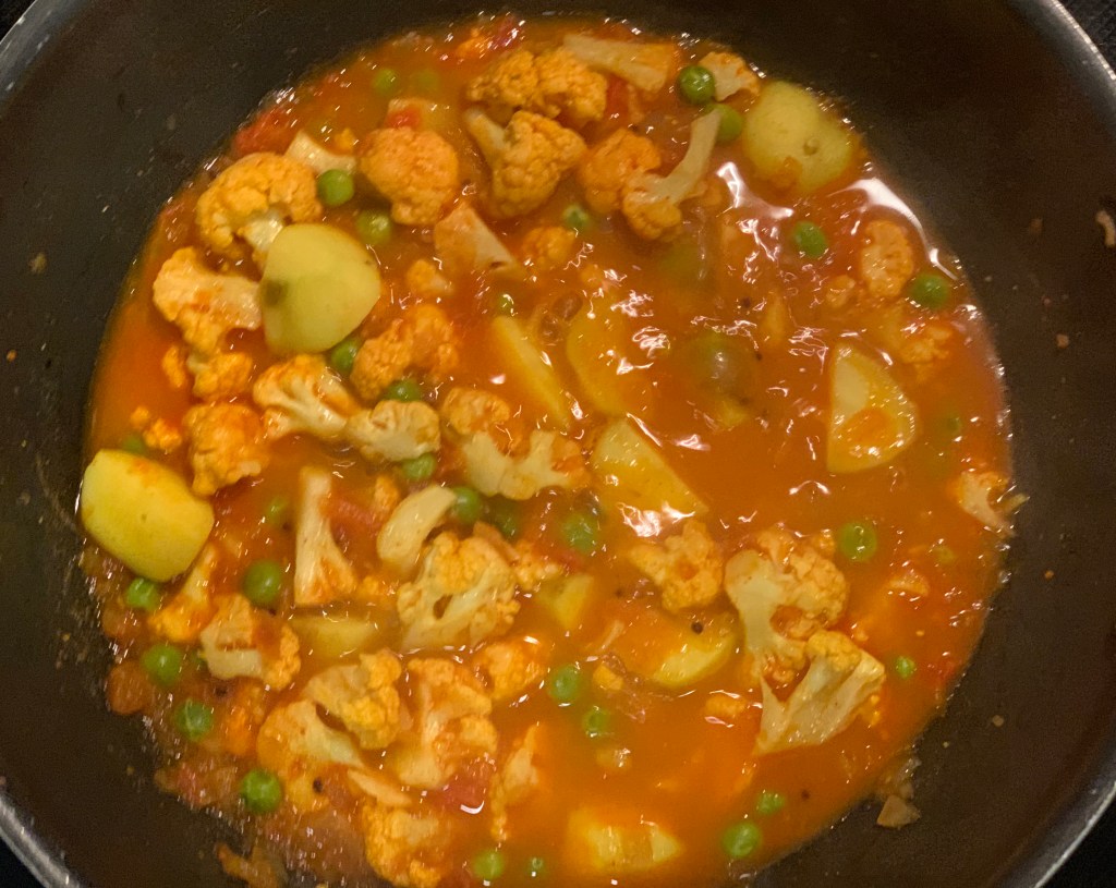 Achari mix veg contains pickling (nothing to do with pickles here in the US) spices that add tangy and spicy flavor to the curry. It pairs very well with wheat roti and naan.